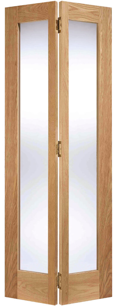 This Contemporary Pattern 10 Glazed Bi-Fold Oak door is supplied with CLEAR GLASS.