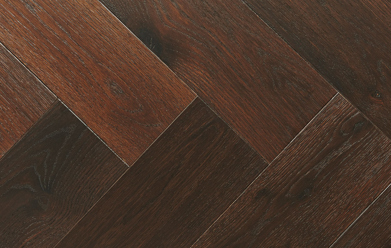 A dark brown floor with a rich tone, Liquorice is available as wide planks as well as herringbone blocks. It has been engineered using nature grade European oak which means there are natural knots, colour variation and sap. Each board or block has been lightly brushed to reveal the natural grain detail of the oak.