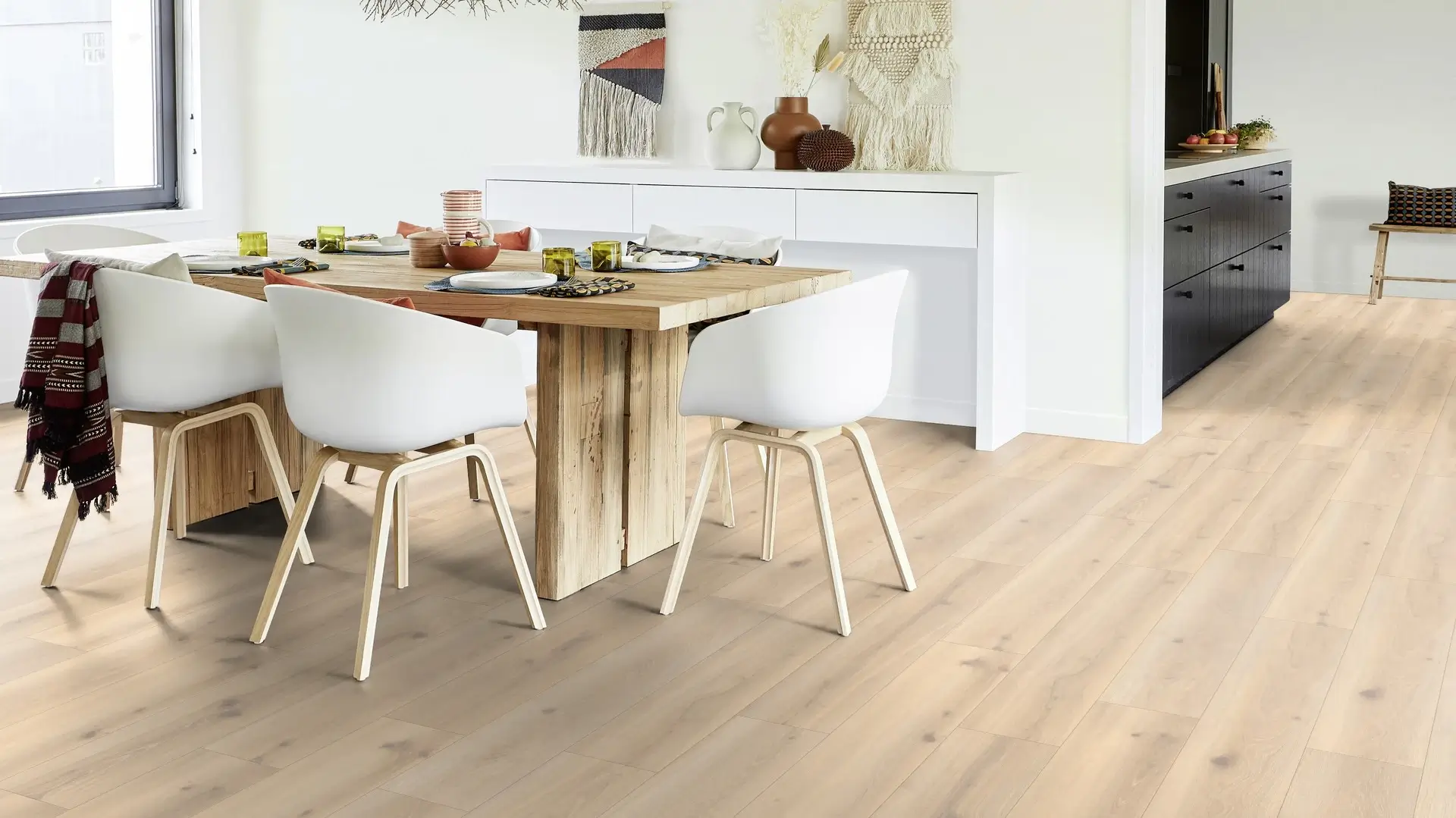 The Inspiration Naturals designs are literally scanned from nature through the meticulous sourcing of high quality raw materials such as wood and stone. Using a unique patent protected digital printing technology, the only single-pass 2 m wide printer for jetting water-based inks on vinyl in the world, Tarkett can replicate the best of nature’s diverse features, from characterful wood grains to the subtle textures and nuances of stone. To convey the true diversity of the natural world in all its glory, Inspiration Naturals offers non-repeating motifs up to 12 m² and an ultra matt, highly natural looking ‘Tektanium’ surface finish.
