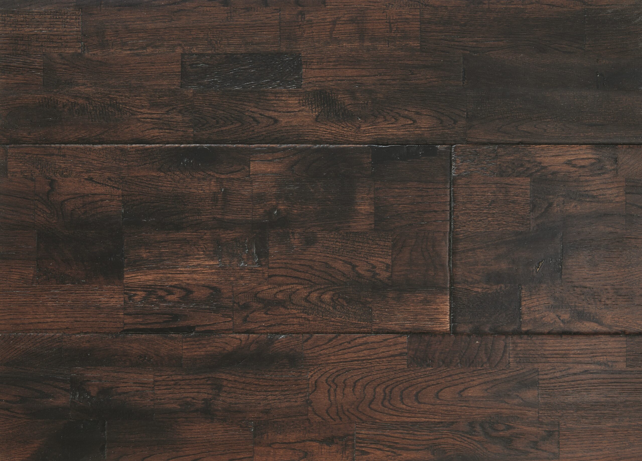 The deep dark tones of this flooring will create a statement in any room. The visible knots and splits give the floor character and an aged effect.