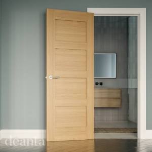 The Coventry oak door is equally at home in a farmhouse, cottage, apartment, newbuild, or townhouse. The minimalist style of this door is at once traditional and contemporary. striking and understated, rustic and sleek. The solid door features four evenly sized panels of crown-cut oak veneer within a simple veneer surround.