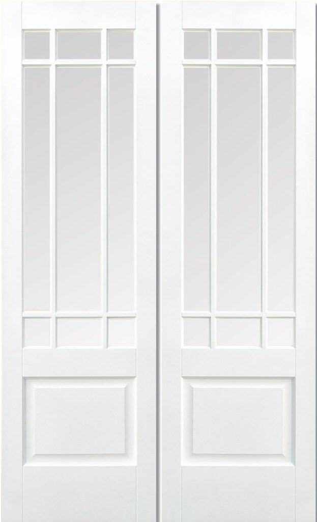 The LPD Internal Solid White Primed Downham Pair Door is part of the high quality LPD white internal door range of solid core doors. The LPD double doors are a stylish and modern addition to any home. These LPD doors are pre-glazed and fitted with well crafted clear bevelled toughened safety glass, and one solid raised and fielded panel.