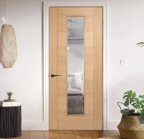 This unfinished oak glazed door blends modern design with natural beauty, featuring a sleek glazed panel. The door’s clean lines and sophisticated paneling create a striking, contemporary look, perfect for adding both style and functionality to any room. The transparent glass allows light to flow through, brightening spaces while offering a glimpse of the room beyond. Ideal for living rooms, hallways, or bedrooms, this door provides a perfect balance of elegance and practicality.
