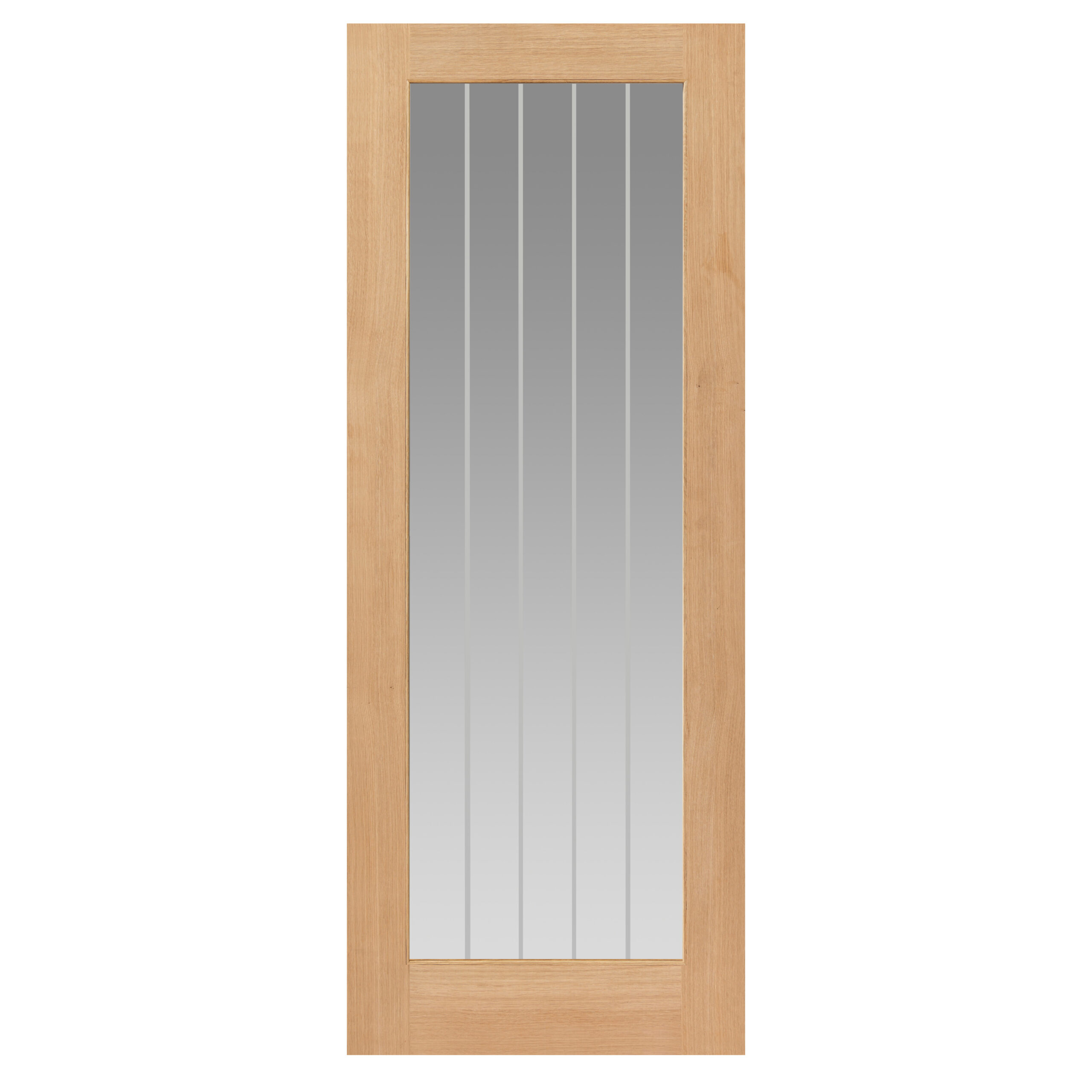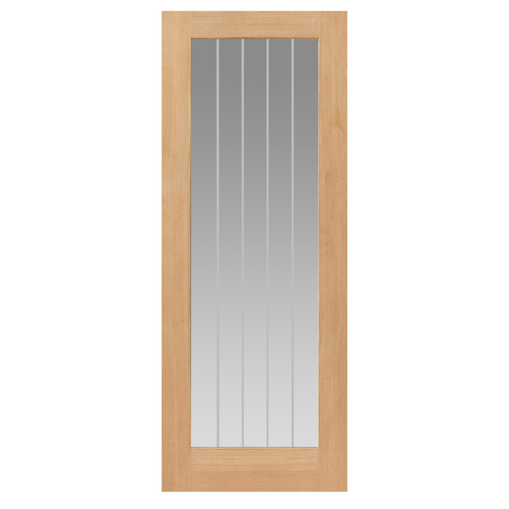 An Oak glazed internal door with etched glass, the Thames Oak 1 Light door will allow natural light to flood into your home. The etched vertical lines provide the look of a cottage door and rustic charm. This internal door is supplied unfinished, ready for the finish of your choice.