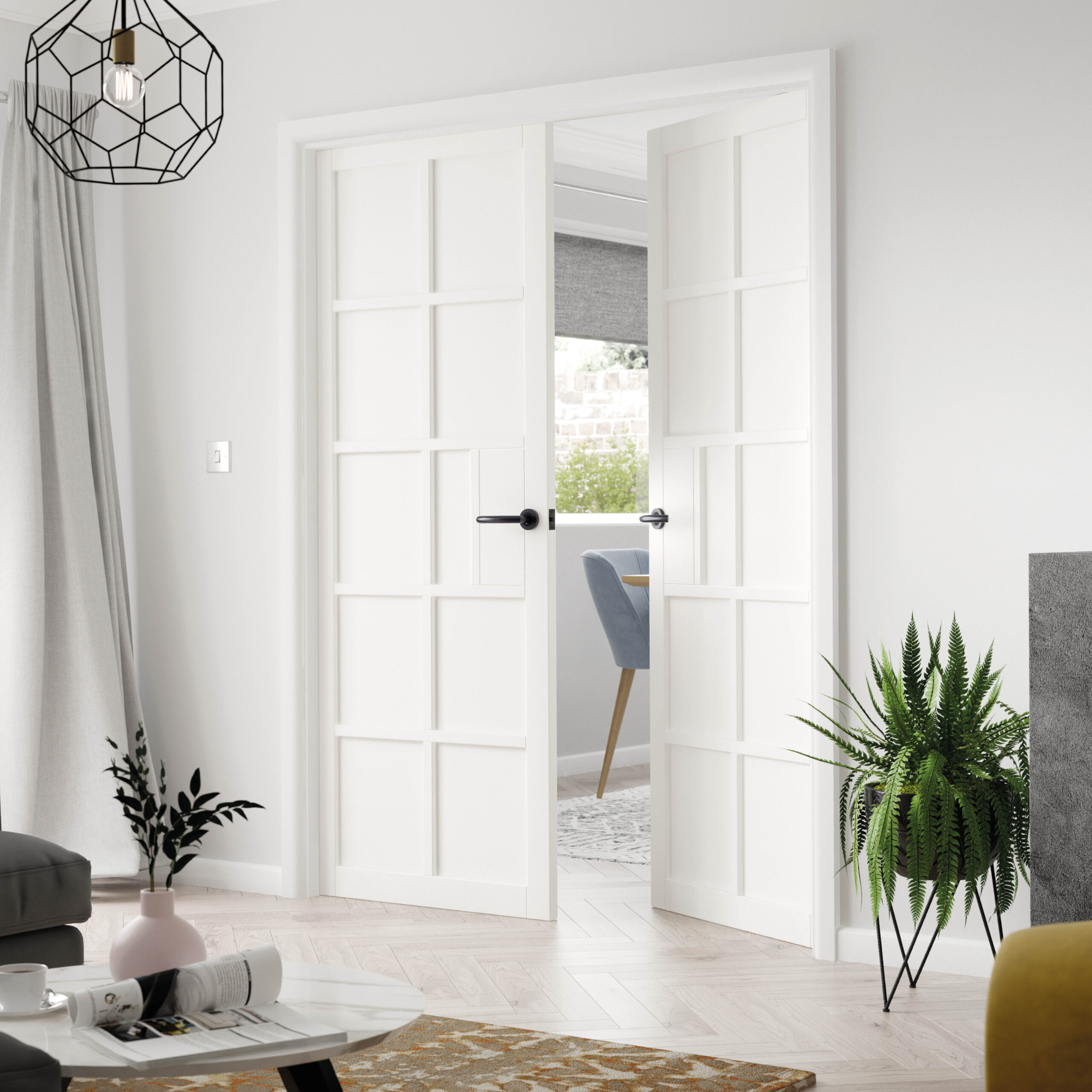 A contemporary industrial style white interior door, with 10 industrial style recessed panels, the Plaza White door will bring that stylish finishing touch to your home.