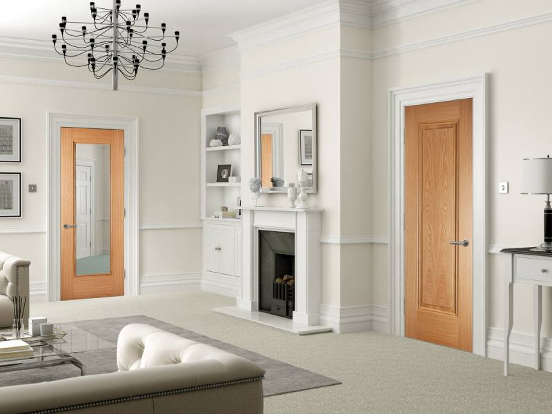 Traditional internal Pre-finished oak door with a central square panel surrounded by rich, decorative mouldings. This door is available in a range of sizes and matching models are also available glazed Solid FD30 fire door and a solid non-fire rated door are also available