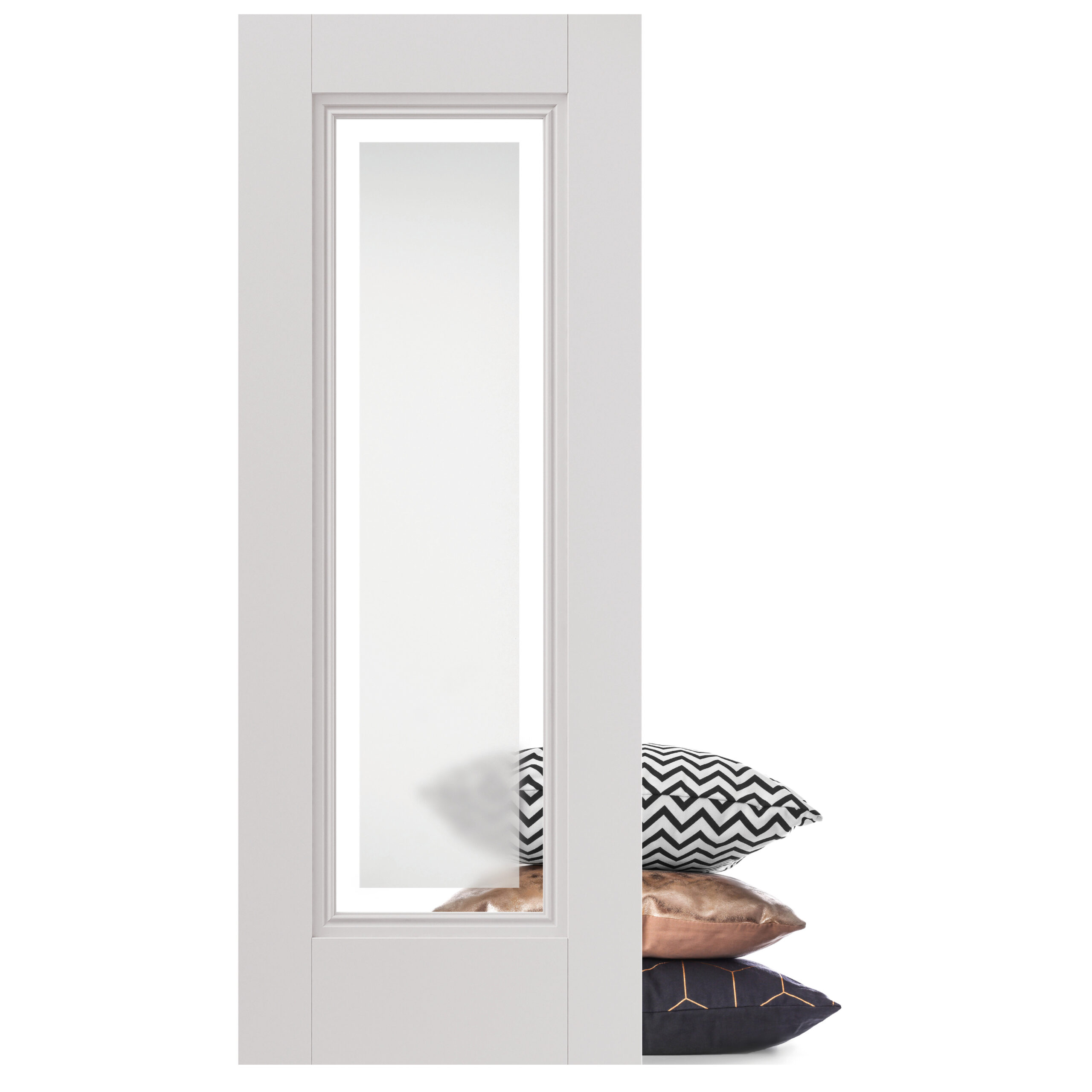 A classic white primed interior door with etched glazed panel and decorative flush mouldings, let light flood into your home whilst providing privacy with the Belton glazed internal door. The stunning modern and elegant design of the Belton door will complement any interior space.