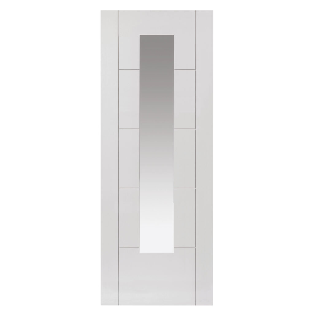With a sleek modern appearance, the Emral White Glazed Internal Door is a popular contemporary white veneered five ladder style internal door. Glazed with clear glass, and supplied complete with a varnish finish, this door allows natural light to flow into your home.