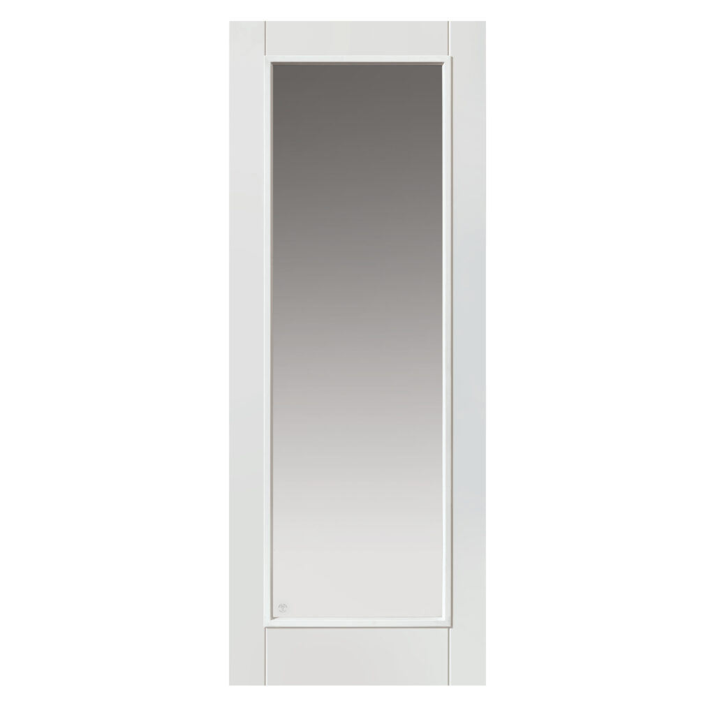 The Tobago door embodies timeless elegance with its traditional white shaker style, distinguished by a large central panel of clear fire glass adorned with raised beading. This clear glazed fire door not only enhances the aesthetic appeal of any space but also prioritises safety with its fire-resistant properties.